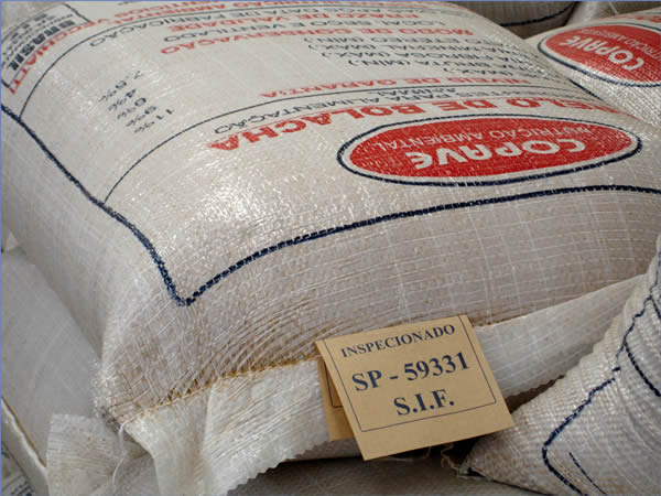 O Farelo de Bolacha Copave é embalado em sacos de 40 Kg ou Big Bags, acondicionado em galpões adequados seguindo as normas vigentes.